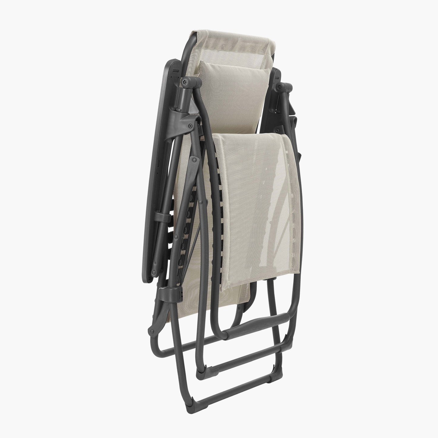 The Futura is THE yardstick of Lafuma Mobilier relaxation chairs. It is the perfect companion for all your downtime moments with its multiple resting positions, including the famous "zero gravity" position (with the legs slightly above the heart) which is THE optimum relaxation position. Its fixed armrests with stabilizers are very useful as they allow pressure to be applied by the hands in order to get up effortlessly. It is the unrivalled product in our relaxation range.